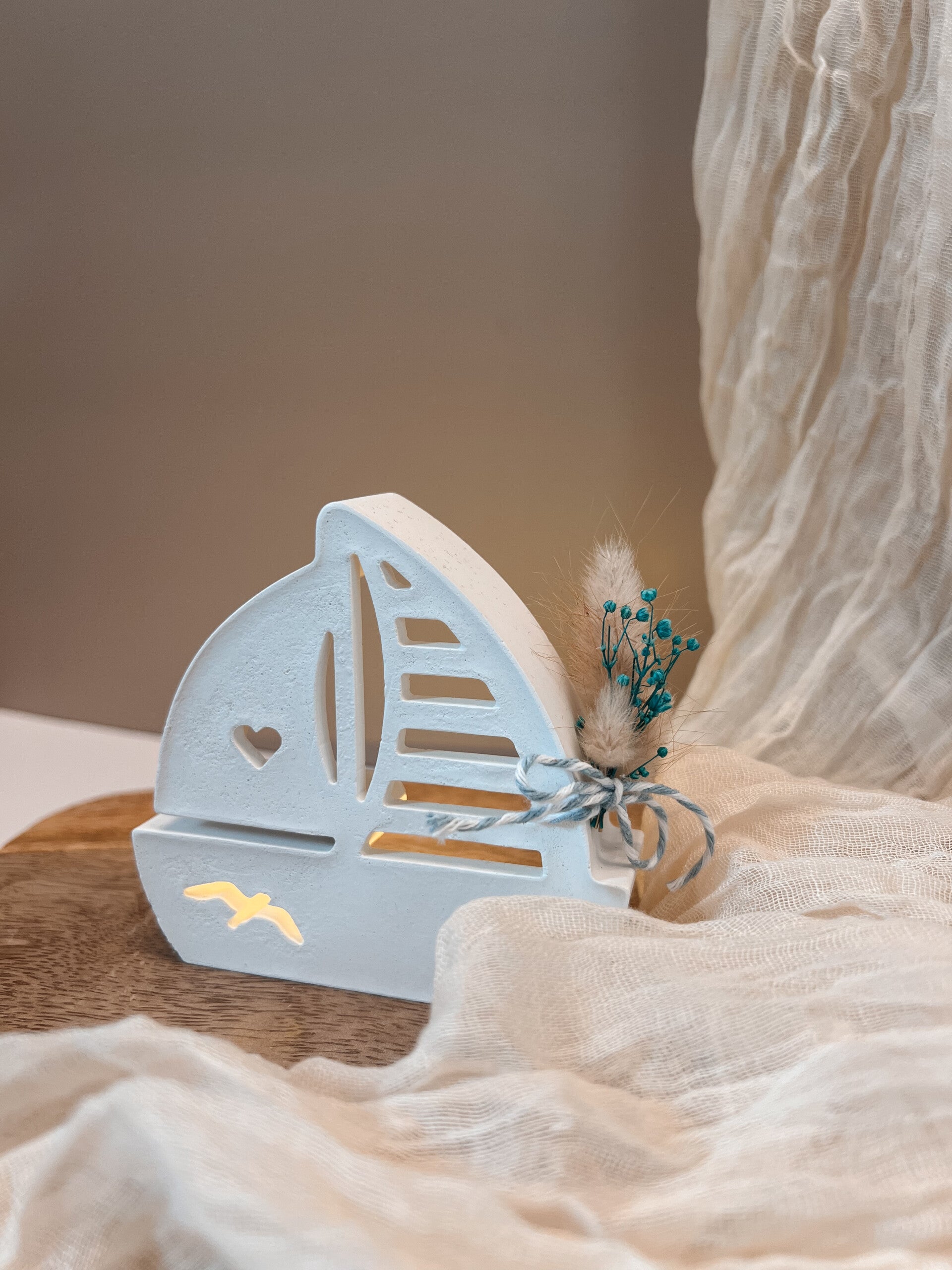 Klein, minimalistisch und stimmungsvoll: Das Boot wird von einem sanften LED-Ballonlicht erleuchtet – perfekt für gemütliche Akzente zu Hause.