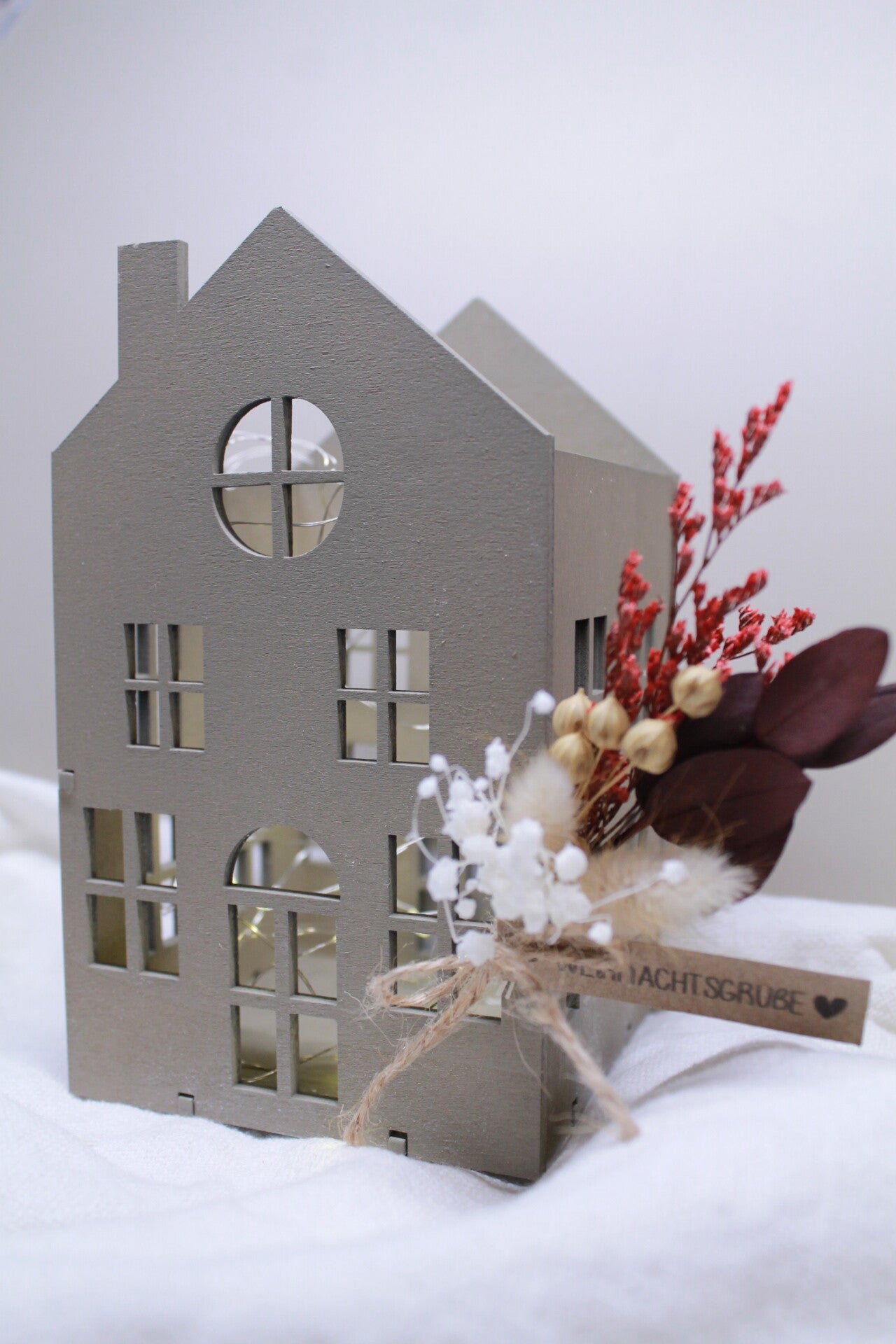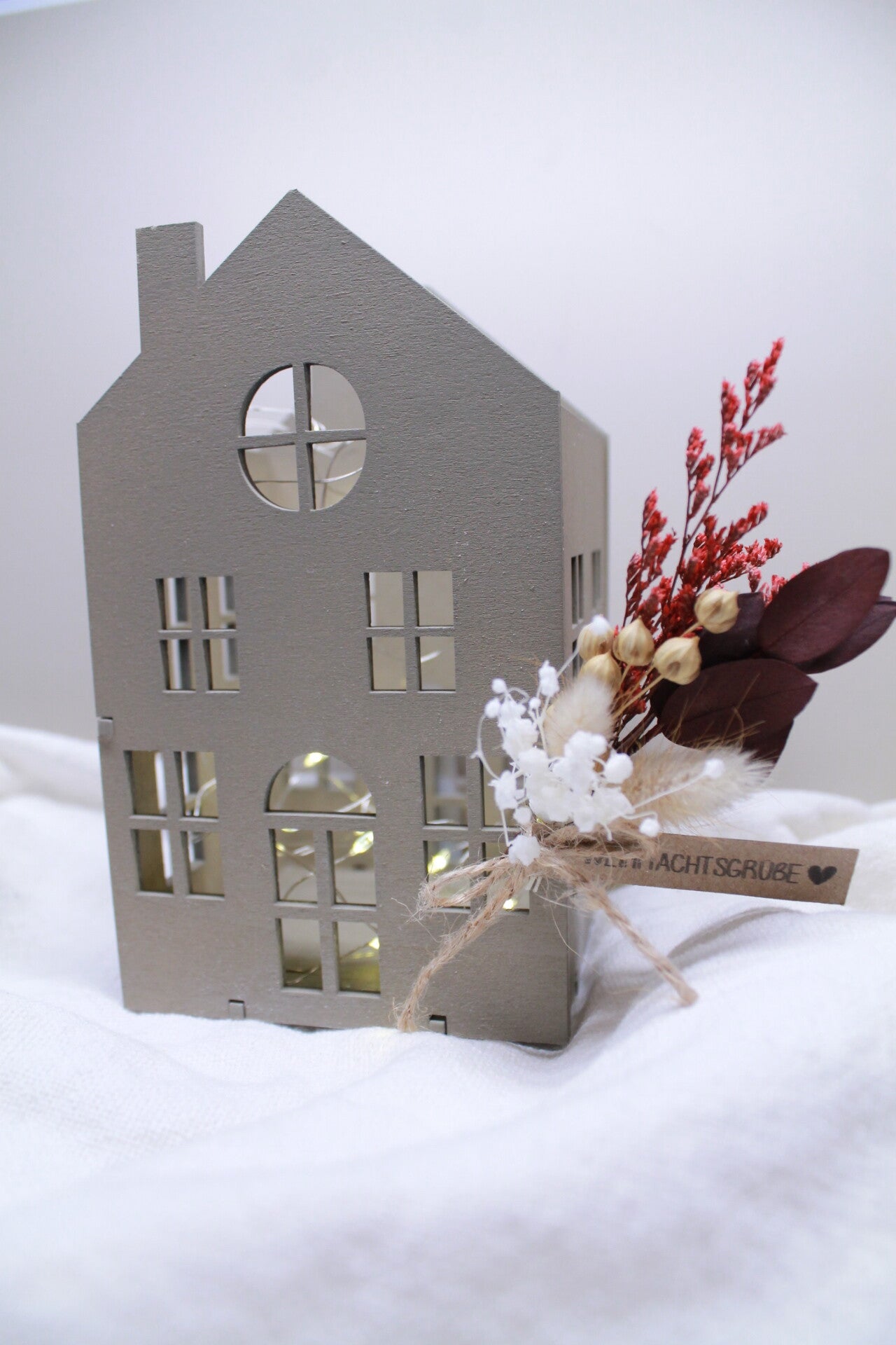 Lichterhäuschen veredelt mit Trockenblumen – liebevoll handgemacht in Deutschland