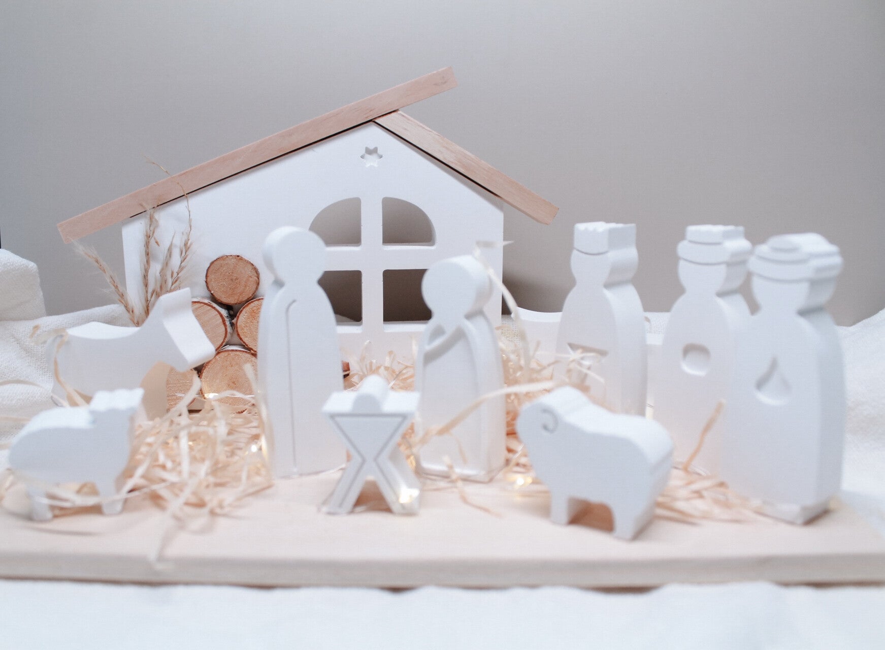 Unsere moderne aus hochwertigem Gips gegossene Krippe ist ein schöner Hingucker in der Vorweihnachtszeit.